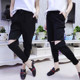 春夏新款韩版黑色膝盖大破洞裤小脚哈伦裤九分裤弹力显瘦休闲裤女