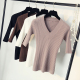 清仓-不退不换V领修身百搭中袖半袖针织衫女套头上衣t恤