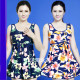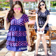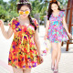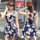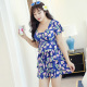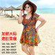 加肥加大码印花裙式平角连体女士游泳衣显瘦遮肚双肩带保守款泳装