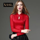 2016秋冬复古旗袍拼接网纱外穿打底衫盘扣立领长袖大码T恤上衣女