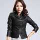 2017春装新款 韩版立领水洗PU皮夹克外套 女士大码短款修身小皮衣
