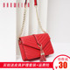 包薇尔2017新款牛皮女包 红色锁扣小方包 时尚单肩斜挎包女士包包