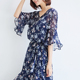 雪纺碎花V领连衣裙女短袖2017新品韩版喇叭袖宽松印花气质长裙夏