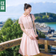 红念2017夏装新款粉色连衣裙仙气中长款文艺短袖a字裙收腰长裙子