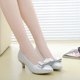 淘德一品老北京布鞋 纯洁优雅小鱼嘴蝴蝶结防水台坡跟轻巧女凉鞋