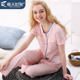 豪天世家夏季女士睡衣 纯棉短袖长裤开衫条纹宽松甜美家居服套装