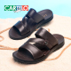 卡帝乐鳄鱼户外拖鞋夏季防滑真皮凉拖男士一字凉鞋韩版休闲沙滩鞋