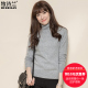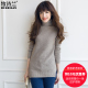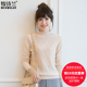 牧诗兰2017秋冬新款堆堆领羊绒衫拼色女式毛衣修身百搭针织打底衫