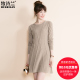 牧诗兰2016新秋冬中长款圆领羊绒衫女修身套头纯色毛衣针织打底裙