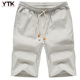 夏季新款男士短裤男夏天修身五分裤棉麻纹路纯色沙滩裤休闲中裤潮