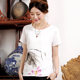 唐装汉服 女装短袖旗袍上衣t恤中式茶人服女棉麻文艺手绘改良古装
