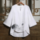 墨迹古装中式改良上衣宽松大码圆领汉服女七分袖棉麻t恤秋茶人服