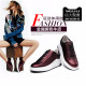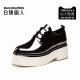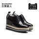 白领丽人秋季新款牛漆皮厚底内增高时尚拼接系带运动休闲鞋女