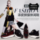 白领丽人秋冬新款牛皮圆头厚底鞋系带拼接运动高帮休闲靴女鞋
