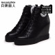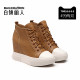 白领丽人秋季新款系带女鞋圆头高帮牛皮时尚内增高休闲鞋潮女