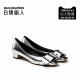 白领丽人春夏新款时尚金属牛皮方头平跟浅口单鞋内增高女鞋