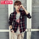 春季新款韩国代购男装青少年韩版修身学生格子衬衣潮男士长袖衬衫