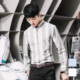 拉恩席克韩版春装潮男士衬衣修身型男装休闲拼色青年印花长袖衬衫