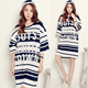 韩版春夏新款女装宽松大码中长款条纹七分袖T恤裙显瘦连衣裙女潮