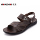 • 旺奈夏季真皮沙滩鞋男老人凉拖软底中老年男凉鞋爸爸凉鞋防滑清仓
