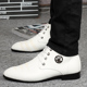 冬季新款加棉低帮男鞋韩版亮面理发师潮鞋白色尖头皮鞋加绒休闲鞋
