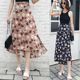 韩版气质名媛不规则前短后长碎花高腰半身裙中长印花雪纺裙度假裙