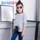 女童条纹t恤长袖2017新款春秋中大童纯棉打底衫儿童春装薄款上衣
