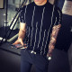 2017年春夏青年短袖T恤男潮英伦风百搭条纹打底衫男修身体恤上衣