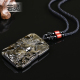 若灵开光正品天然金曜石关公吊坠黑曜石本命 武财神项链男士