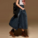 两棵树1977文艺复古水洗做旧磨白牛仔裙女半身长裙大摆裙2016秋装
