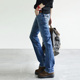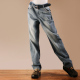 两棵树1977 显瘦微弹 复古高腰牛仔裤女秋宽松阔腿长裤做旧直筒裤