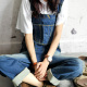 两棵树 大码破洞牛仔背带裤长裤女2016秋季宽松休闲大口袋日系