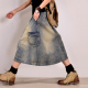 日系 大码胖MM 破洞牛仔背带裤女宽松阔腿连体裤(可做孕妇装)