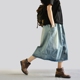 两棵树 文艺复古松紧腰中长款牛仔裙大码 秋冬半身裙森女花苞长裙