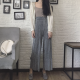 冰丝绒拼接高腰阔腿休闲裤女春夏季韩版学生百搭直筒裤九分花苞裤