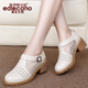 伊蒂卡诺2017春季韩版真皮女鞋镂空粗跟女皮鞋透气系带中跟女单鞋