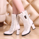 2016春秋新款女靴真皮单靴镂空女鞋粗跟中筒靴高跟镂空靴子