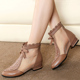 2017新款春夏季凉靴女低跟全真皮网纱凉鞋镂空女靴子时尚网靴女