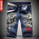 衣览无余牛仔短裤男修身韩版潮流男士中裤个性印花五分马裤夏薄款