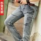 衣览无余牛仔裤男韩版修身型潮流青年灰色小脚裤男个性拼接春夏款