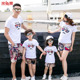 一家三口亲子装沙滩套装夏装全家装家庭短袖t恤沙滩裤母子装夏季