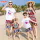 沙滩亲子装夏装套装海边度假一家三口四口全家庭装母女装短袖夏季