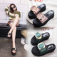 拖鞋女夏2017韩版时尚厚底松糕百搭女士一字拖平底高跟外穿凉拖潮