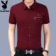 花花公子男士短袖衬衫 中青年男士商务休闲衬衣 纯色薄款翻领男装