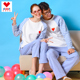 Didot情侣睡衣秋冬季长袖纯棉男女蓝白条纹可爱卡通家居服套装