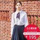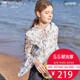 迪赛尼斯2017春夏装雪纺衫女长袖印花V领喇叭袖短款上衣修身韩版