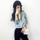 秒杀!小辣椒4月19日透视拼接蕾丝拼皮水蓝色衬衫