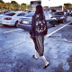 『水家出品』春夏深V领条纹字母米奇徽章运动风套头针织+长裤
