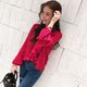 『水家出品』17春钩花刺绣红条V领星星蕾丝上衣+半裙两件套送吊带