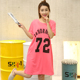 睡安琪夏季宽松韩版女人短袖睡裙数字72西瓜红大码数字睡衣家居服